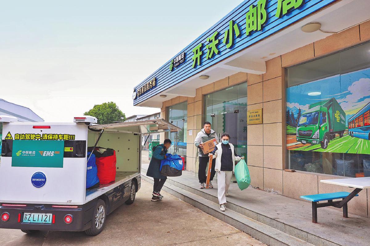 該無人車是南京市郵政分公司首臺嵌入業(yè)務環(huán)節(jié)的無人車,它配合溧水郵政在園區(qū)設立的無人小郵局,形成了全自助、24小時營業(yè)的雙無人模式,提供全天候、不間斷的自助取件、寄件及退件服務,顯著提升了服務效率,日均運送郵件量超過600件。