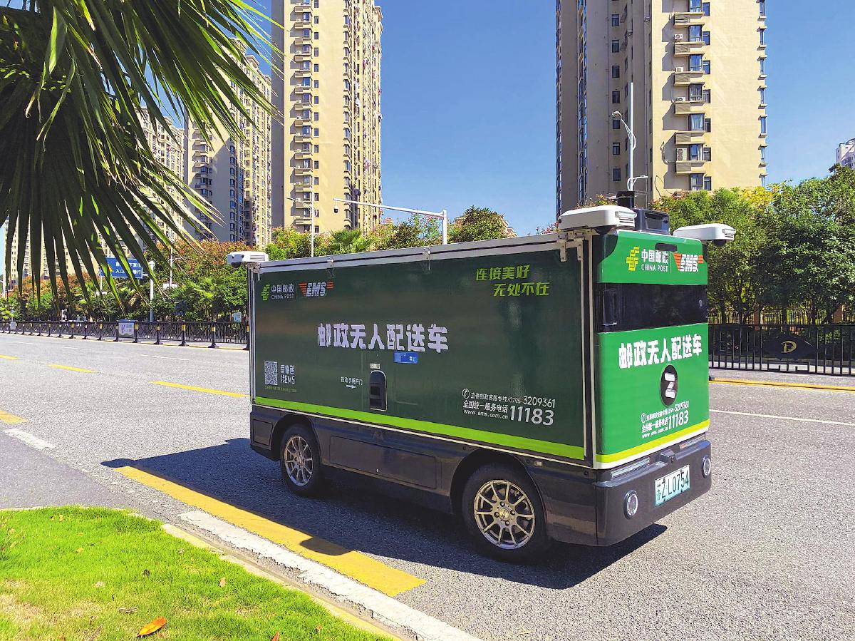 11月,車身上標(biāo)有“中國郵政”標(biāo)識(shí)的無人配送快遞車在江西省宜春市袁州區(qū)亮相,成為當(dāng)?shù)亟诸^一道亮麗的風(fēng)景線。無人配送快遞車主要負(fù)責(zé)執(zhí)行新城攬投部的兩次轉(zhuǎn)趟任務(wù)及湖田鎮(zhèn)四個(gè)自提點(diǎn)的配送工作,日均裝載投遞量達(dá)800件以上,轉(zhuǎn)趟運(yùn)輸650件,行駛里程為55公里。無人配送快遞車采用先進(jìn)的無人駕駛技術(shù),依托高精地圖、雷達(dá)與攝像頭等多重傳感器,實(shí)現(xiàn)了運(yùn)輸中轉(zhuǎn)全流程的智能化運(yùn)行,開啟江西郵政智能綠色環(huán)保投遞時(shí)代,成為“綠色郵政宣傳月”活動(dòng)中當(dāng)之無愧的“明星車”。