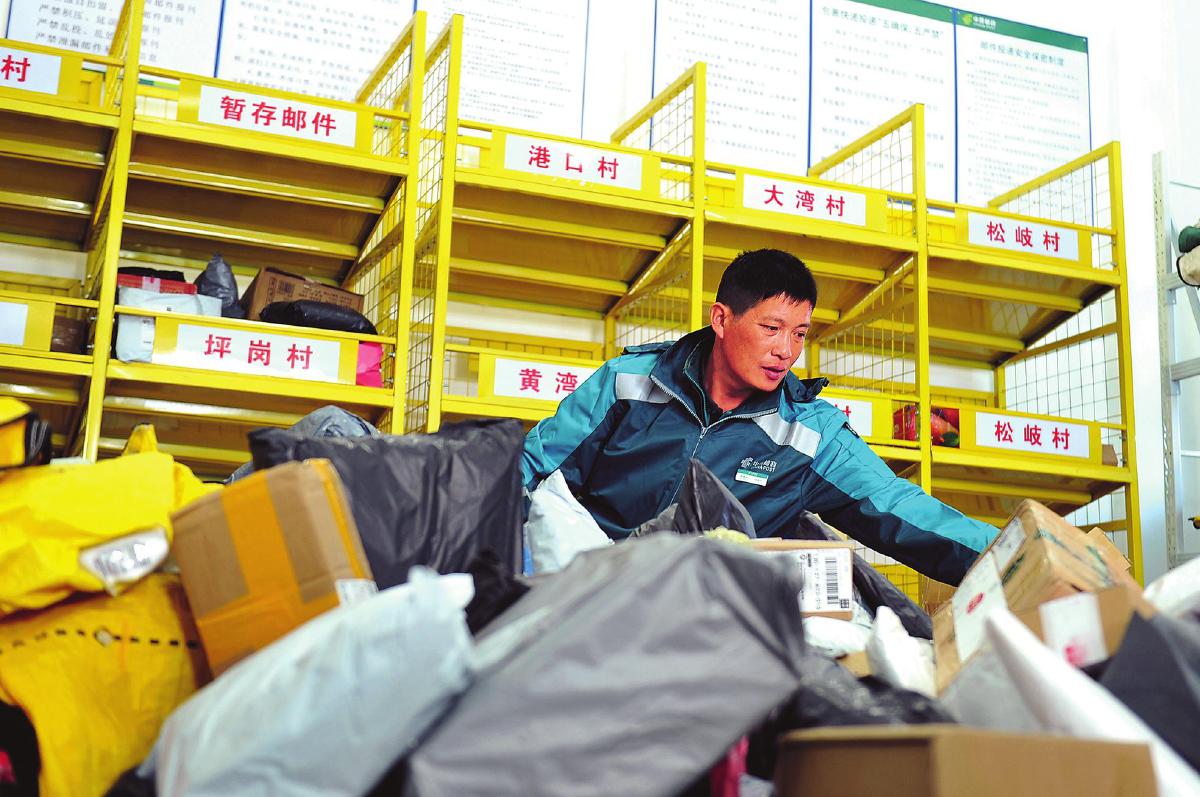 石進全分揀當天要配送的郵件。 □武亞亮攝