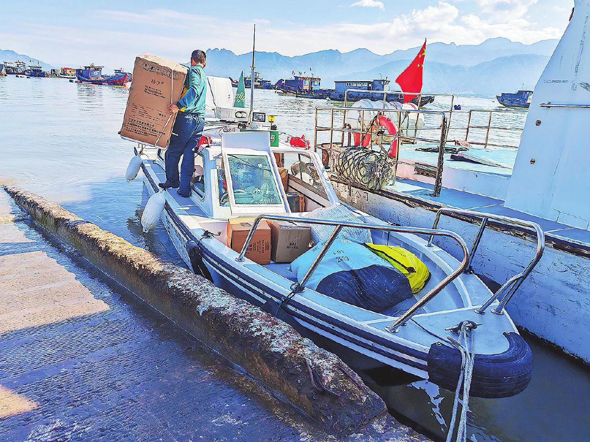 在三都鎮(zhèn)青山島蝦蕩尾村碼頭,石進全帶來了漁民的期盼?! 鯀挝亩Y 攝