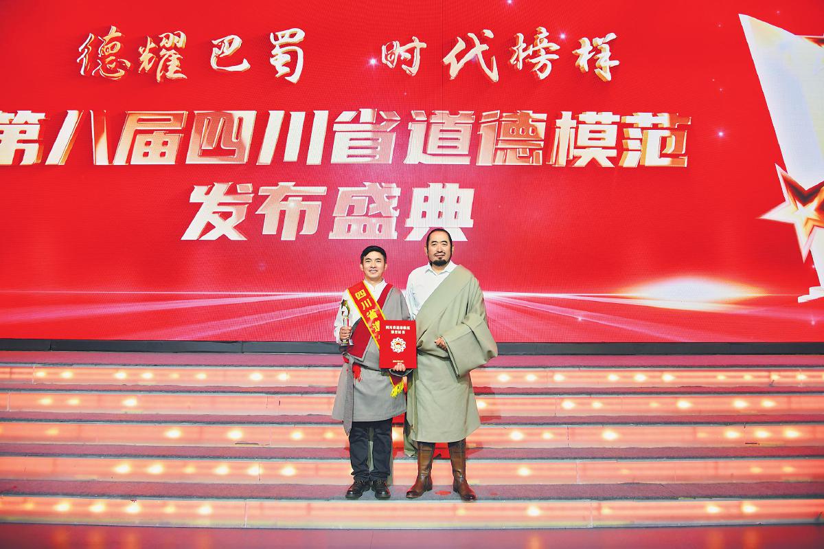 12月21日,第八屆四川省道德模范發(fā)布盛典在成都舉行,評選出助人為樂、見義勇為、誠實(shí)守信、敬業(yè)奉獻(xiàn)、孝老愛親5個類別共50名道德模范,若爾蓋縣郵政分公司網(wǎng)運(yùn)投遞班組長哈弄奪機(jī)獲評“敬業(yè)奉獻(xiàn)”道德模范。在活動現(xiàn)場,時代楷模、全國勞模、四川省甘孜縣郵政分公司長途郵車駕駛員其美多吉作為頒獎嘉賓為哈弄奪機(jī)頒獎。
