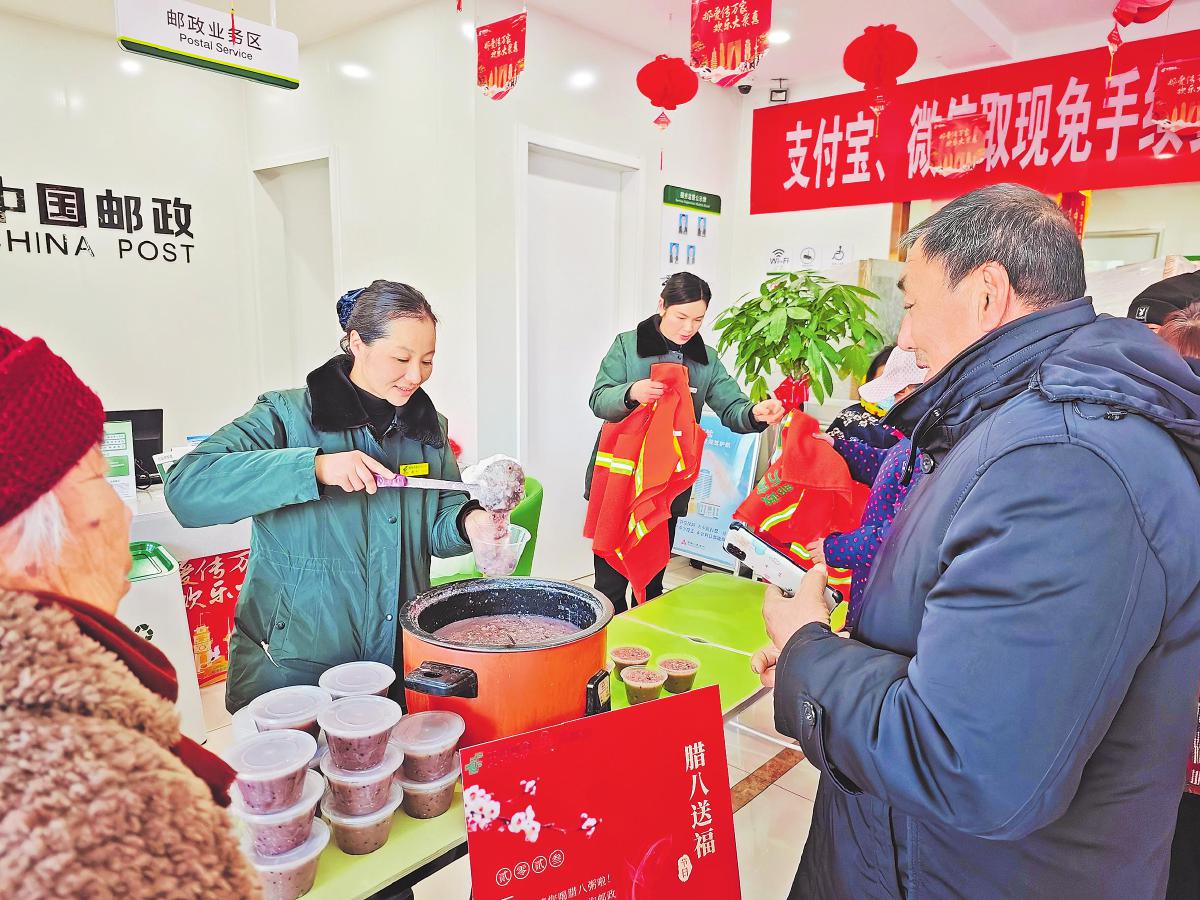 1月7日一早,江蘇省灌南縣郵政分公司九隊支局聯合當地環(huán)衛(wèi)部門舉辦“情暖臘八,‘郵’愛你我”活動。該支局精心熬制了臘八粥,邀請新老客戶和環(huán)衛(wèi)工人免費品嘗,并為環(huán)衛(wèi)工人贈送專屬愛心馬甲,共同感受傳統(tǒng)節(jié)日的喜慶氛圍。同時,支局工作人員還現場講解郵政金融知識,開展反詐宣傳,增進了與客戶的交流。