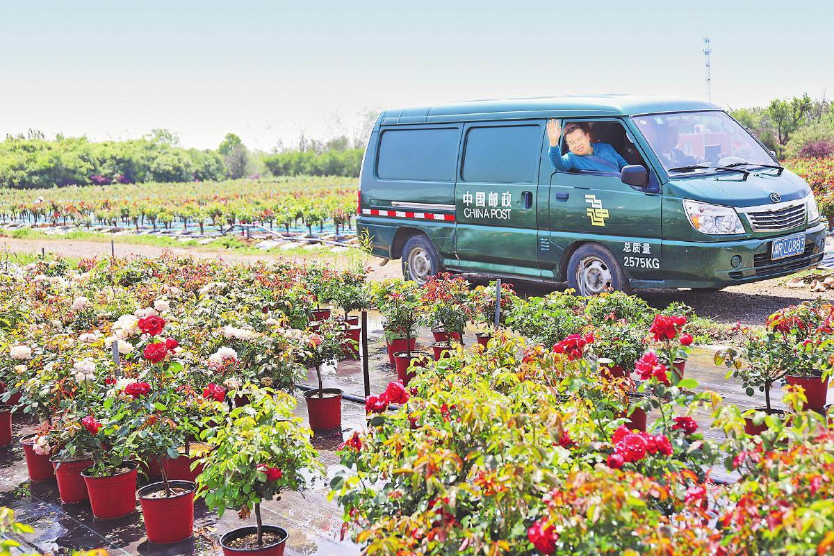 花容秀麗、芳香馥郁的南陽月季通過郵政渠道進入千家萬戶?!鮿⒘P 攝