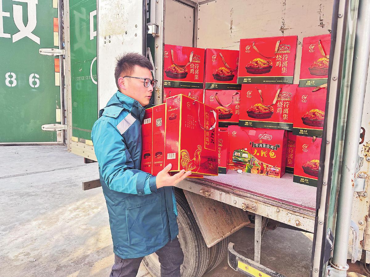劉闖將劉老二年貨燒雞搬上郵車?!趺ト恪z