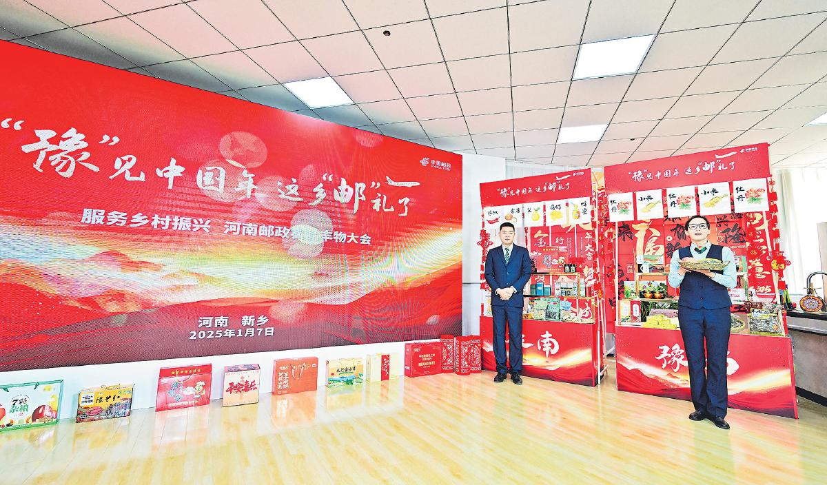 同日,河南郵政農(nóng)品豐物大會在新鄉(xiāng)舉行,來自河南郵政豫東、豫西、豫南、豫北四個直播基地的主播推介本地優(yōu)選的豫郵農(nóng)品、特產(chǎn)好物,并通過直播抽獎方式送出河南特色農(nóng)產(chǎn)品。活動現(xiàn)場,河南郵政還以短視頻方式展示了全省各市的特色農(nóng)業(yè)、優(yōu)質(zhì)農(nóng)品,發(fā)布2025年在寄遞物流、金融信貸、產(chǎn)銷對接等方面的8項惠農(nóng)服務(wù)大禮包。