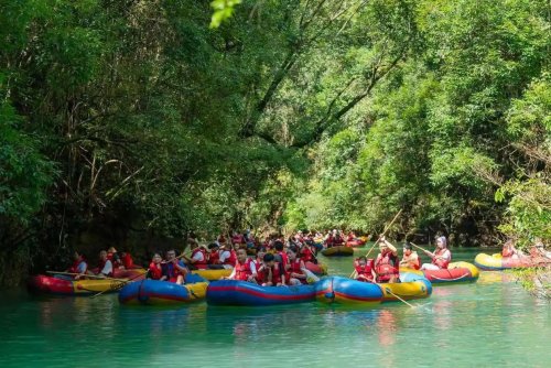 “荔波毓秀勝蓬瀛,七孔滄桑蘊(yùn)古情?!崩蟛h民族風(fēng)情古樸濃郁,因其獨(dú)特的地理位置和豐富的文化底蘊(yùn),孕育了地球“綠寶石”小七孔。踏入小七孔景區(qū),依托景區(qū)擺渡觀光車親水、戲水以及“水上飛人”“水上摩托艇”等旅游項(xiàng)目吸引了游客的目光。