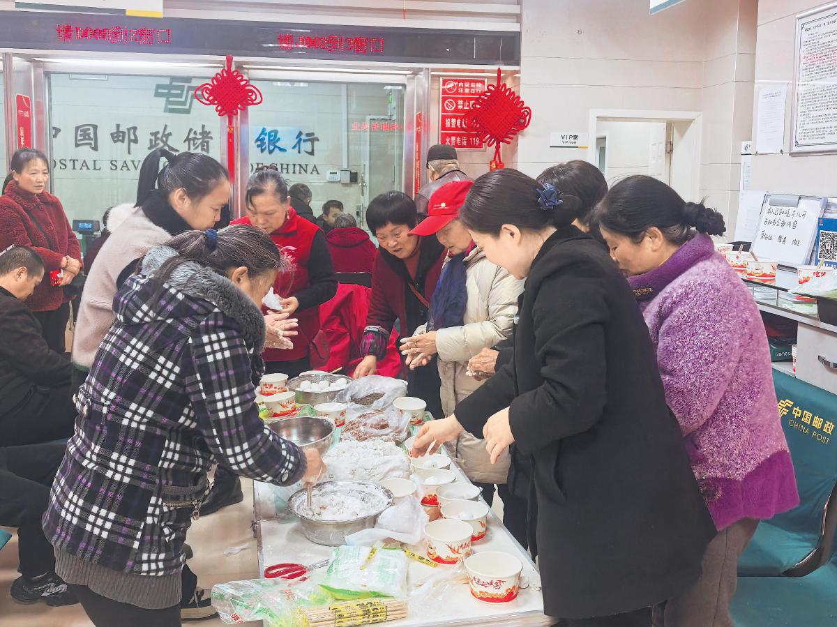 2月12日,四川省隆昌市郵政分公司各網(wǎng)點(diǎn)邀請(qǐng)客戶一起做湯圓,熱熱鬧鬧過大年??蛻魝儫崆楦邼q,紛紛挽起袖子大顯身手,與郵政員工一起搓湯圓,網(wǎng)點(diǎn)內(nèi)一片歡聲笑語。有的客戶現(xiàn)場品嘗親手制作的湯圓,有的客戶將湯圓打包帶回家,與家人一同分享節(jié)日的喜悅。□袁潞 攝影報(bào)道