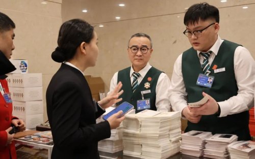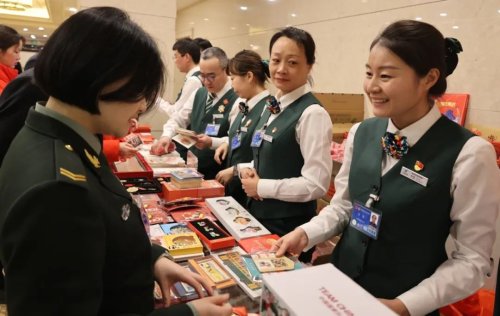 在駐地臨時(shí)郵局的柜臺(tái)前,代表委員和兩會(huì)工作人員或翻閱《郵政服務(wù)指南》了解郵票郵品設(shè)計(jì)內(nèi)涵,或用手機(jī)拍攝文創(chuàng)冰箱貼為親友挑選禮物,更有集郵愛好者仔細(xì)對(duì)比郵品的工藝細(xì)節(jié)。“在兩會(huì)服務(wù)的前期,我做足了功課,學(xué)習(xí)了產(chǎn)品特點(diǎn)和服務(wù)要點(diǎn)。能參加這次全國(guó)兩會(huì)的服務(wù)感到非常榮幸,希望能圓滿地完成此次任務(wù)?!钡谝淮螀⒓尤珖?guó)兩會(huì)郵政服務(wù)的許勇介紹。