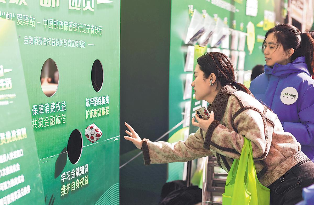3月12日,遼寧省沈陽市郵政分公司與郵儲銀行沈陽市分行聯(lián)合舉辦“3·15”金融消費者權(quán)益保護(hù)教育宣傳活動。郵銀工作人員現(xiàn)場講解維權(quán)事項,展示了消保主題明信片。參與活動的市民還在投沙包趣味游戲的體驗中,了解了金融知識。