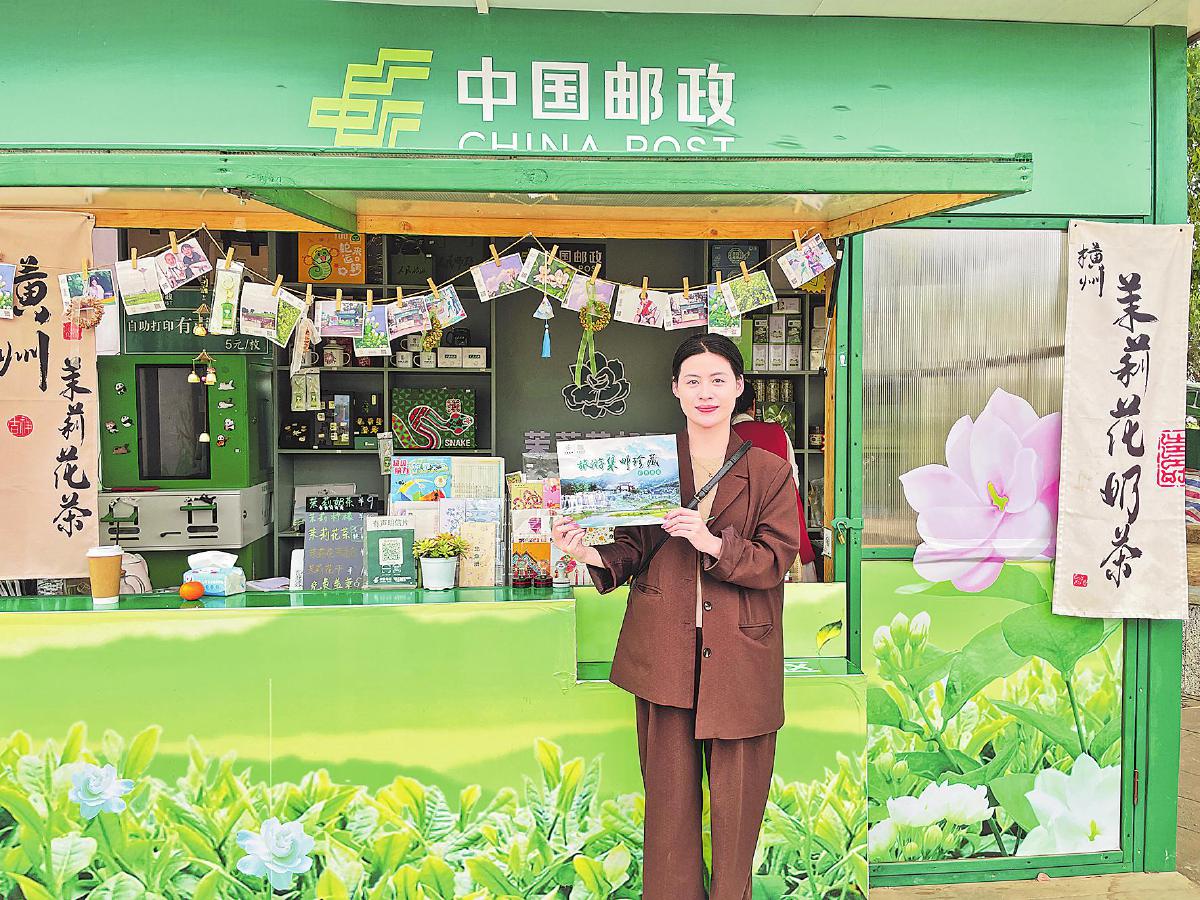 作為國家地理標(biāo)志產(chǎn)品,2024年,橫州茉莉花(茶)綜合品牌價(jià)值達(dá)224.13億元,入選全國第二批地理標(biāo)志助力鄉(xiāng)村振興典型案例。主題郵局的建立,不僅為游客提供了全新的游玩體驗(yàn),而且為當(dāng)?shù)鼗ㄞr(nóng)帶來了實(shí)實(shí)在在的收益。橫州市分公司與當(dāng)?shù)卣?lián)合,在中華茉莉園建立數(shù)千畝的茉莉花基地,與種植戶建立了長期合作關(guān)系,通過采購新鮮茉莉花用于制作茉莉花奶茶及茉莉花香包等產(chǎn)品,幫助花農(nóng)拓寬銷售渠道,助力茉莉花特色產(chǎn)業(yè)高質(zhì)量發(fā)展。