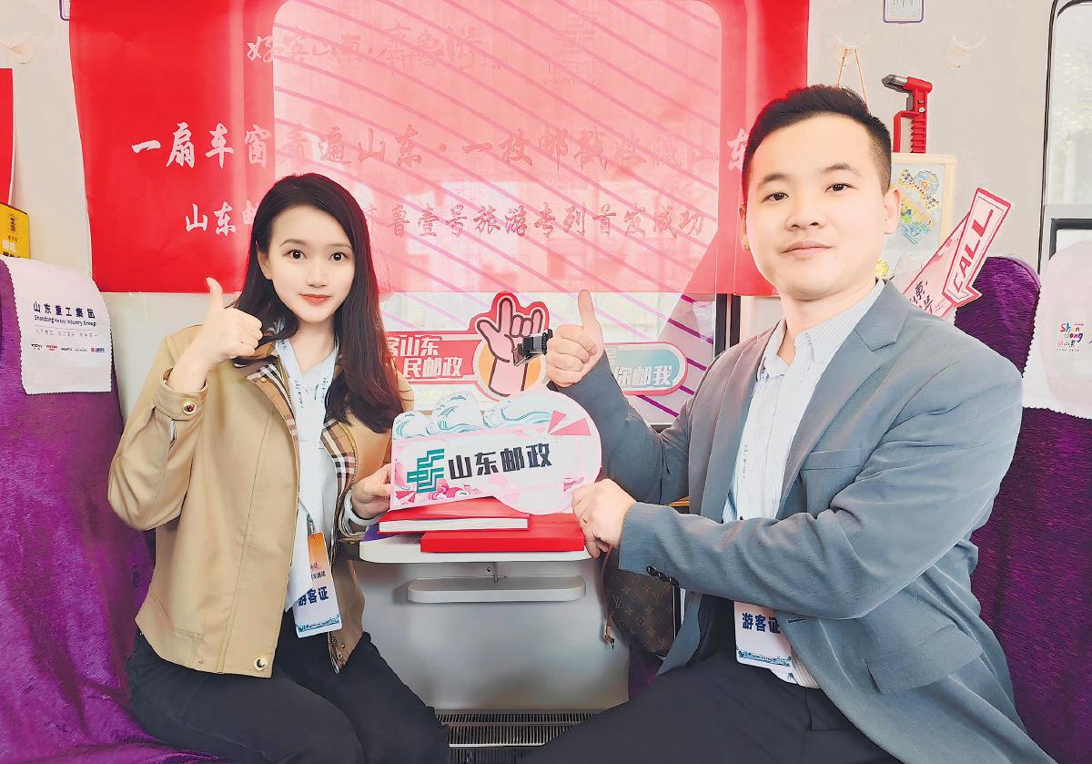 該專列行進(jìn)中,山東郵政還通過抖音直播,實(shí)時播報(bào)列車行程,展示郵政與中鐵文旅聯(lián)合推出的專屬紀(jì)念明信片等文創(chuàng)產(chǎn)品,吸引了大量觀眾參與互動。
