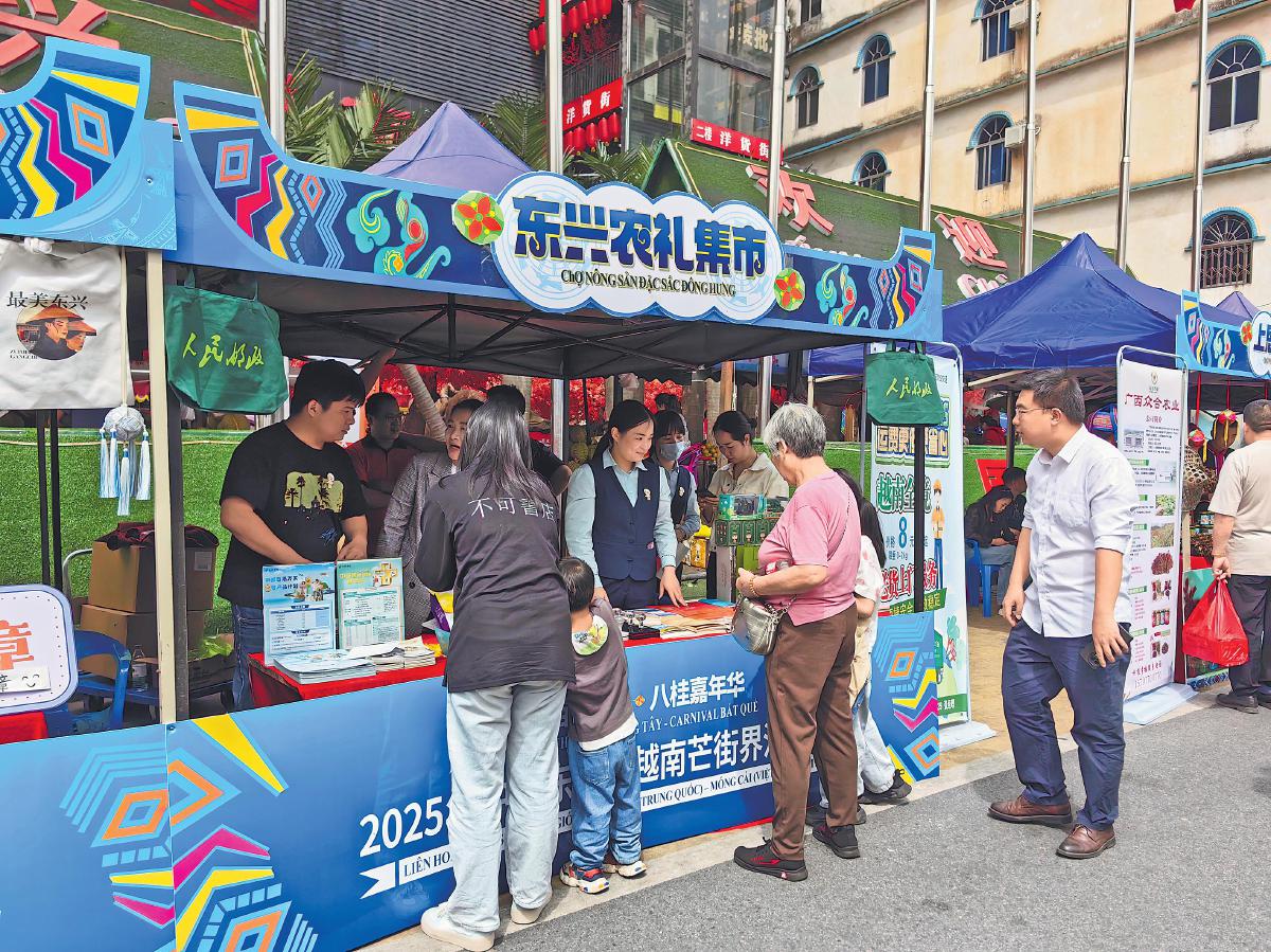 今年是中越建交75周年。4月13日,“2025年中國東興—越南芒街界河大聯(lián)歡”活動在廣西壯族自治區(qū)防城港市東興國門景區(qū)舉行。東興市郵政分公司在活動現(xiàn)場設(shè)置展位,提供郵政服務(wù)、展示文創(chuàng)產(chǎn)品,并開展章戳打卡活動。章戳圖案涵蓋壯錦、銅鼓、繡球等少數(shù)民族元素,以及東興僑批館、上思布透溫泉、防城白浪灘等當(dāng)?shù)鼐包c(diǎn),受到游客的青睞。