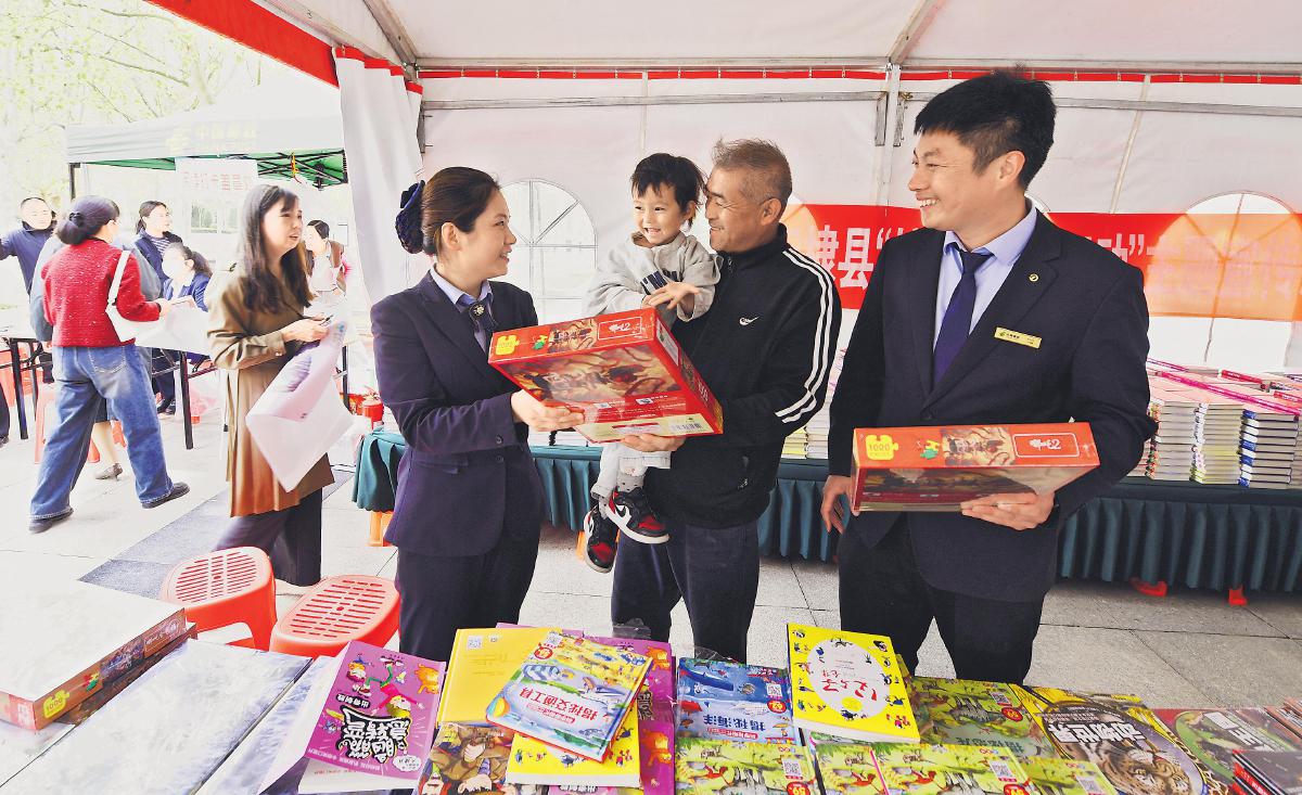 4月18日,“書香古邑·品質(zhì)無棣”全民閱讀季暨“玫瑰書香飄四季”閱讀活動在山東省無棣縣新區(qū)廣場舉行。無棣縣郵政分公司向6所學(xué)校各捐贈了價值2000元的圖書,向勞動模范、先進(jìn)教師等15名代表分別捐贈價值200元的圖書?!鯊埻隆z影報道