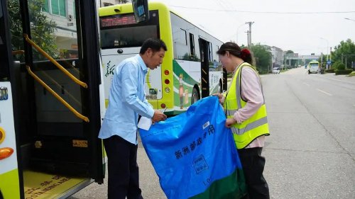 上午11時(shí)左右,車輛抵達(dá)潘塘街漢樓村。聽到鳴笛聲,該村寄遞服務(wù)站負(fù)責(zé)人提前來到路邊等候,與公交司機(jī)交接了其中一袋屬于該村的快遞,一次投遞過程僅30秒。