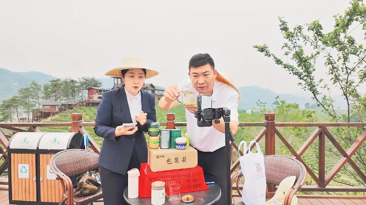 河南郵政直播團(tuán)隊(duì)進(jìn)行信陽毛尖全省聯(lián)動(dòng)直播?! 鯃D片由信陽郵政提供
