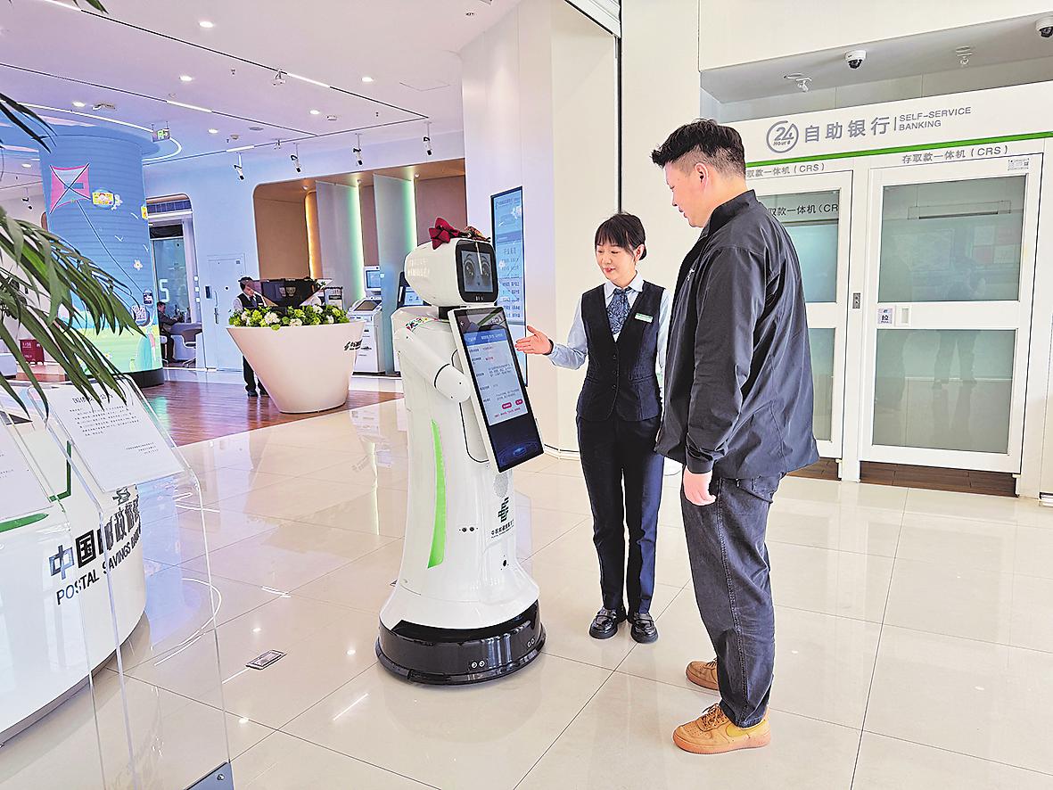 “尊敬的VIP客戶王先生,您預(yù)約的理財(cái)經(jīng)理已在3號(hào)窗口等候?!?月12日9點(diǎn)整,在郵儲(chǔ)銀行河南省分行直屬支行的營(yíng)業(yè)大廳里,智能管家機(jī)器人“郵郵”已經(jīng)開(kāi)始了一天的工作。“郵郵”能夠提供客戶引導(dǎo)、業(yè)務(wù)講解、產(chǎn)品營(yíng)銷等服務(wù),可實(shí)現(xiàn)營(yíng)銷觸客立體化、營(yíng)銷結(jié)果可視化?!暗谝淮我?jiàn)到會(huì)主動(dòng)打招呼的銀行機(jī)器人,孩子特別喜歡,每次只要聽(tīng)說(shuō)我來(lái)郵儲(chǔ)銀行,她都要跟著?!编嵵菔忻駨埮空f(shuō)話時(shí),她的女兒小美正在一旁開(kāi)心地和“郵郵”聊著天,機(jī)器人靈動(dòng)的表情和幽默的應(yīng)答引得周圍客戶紛紛駐足。