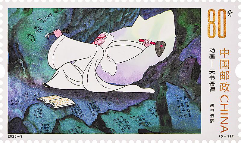 6月1日,《動畫——天書奇譚》特種郵票發(fā)行。該套郵票一套5枚,郵票圖案名稱依次為:鑿書云夢、蛋生拜師、巧用寶盆、大戰(zhàn)狐妖、天書永傳。