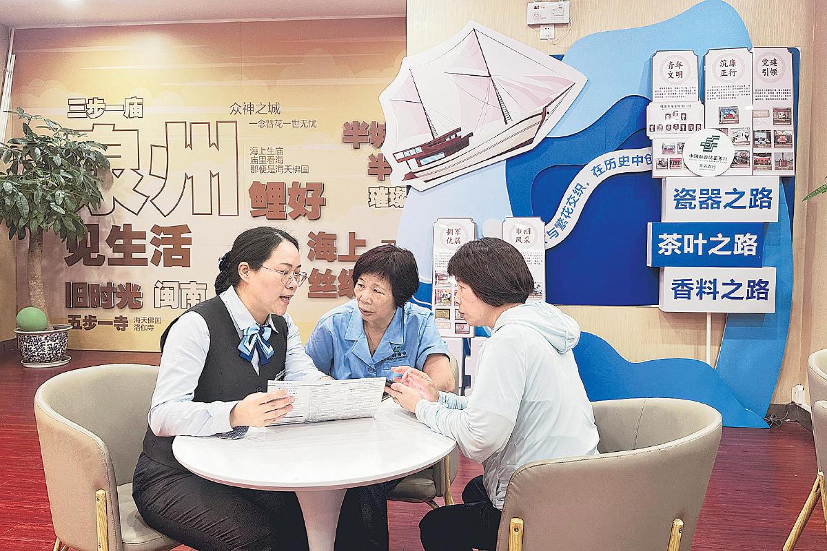 在擁有百年歷史的騎樓建筑中,海濱支行將泉州古城的特色元素巧妙地融入其中:古色古香的泉州木偶、精美的石雕工藝品,還有“福獅”手辦等泉州文創(chuàng)產(chǎn)品,讓客戶感受到古城的歷史文化底蘊和時尚新活力。同時,該支行以打造古城特色支行為目標,以做好活力商圈特色項目為切入點,累計為周邊商圈企業(yè)和商戶授信近2.7億元;與泉州市商務局聯(lián)合舉辦“福建有口?!辈惋嬒M季,打造“美食+金融+文旅”服務模式,今年累計發(fā)放消費貸款1.71億元,帶動信用卡消費增長超1.5億元,為古城注入了消費新動能?!罢豌y行同時給補貼,實實在在地帶動了店里的客流量和經(jīng)營流水?!薄皞髌娼给啞钡牡陠T林禮燕說。