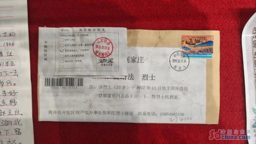 這是一封尋找烈士家屬的信件?!斑@封信的主人是公培法烈士?!蓖醭蓤F(tuán)回憶道,“我們投遞了三天,一直沒(méi)投遞下去,地址是建國(guó)前的地址,按照規(guī)定我們可以退回去,但這是一封烈士的信,是一封不同尋常的信?!闭沁@份責(zé)任感,讓他踏上了為烈士尋親的漫漫征程。