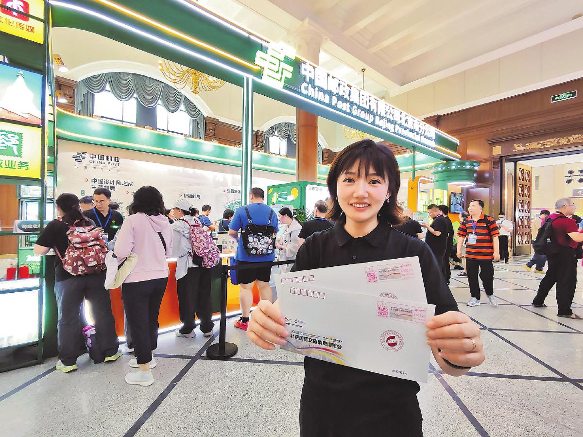 6月20日,2025北京國際文旅消費博覽會在北京展覽館開幕。北京市郵政分公司攜7家特色主題郵局和1家文創(chuàng)體驗店,以“城跡郵路暢享生活”為主題亮相會場,在為期3天的會展期間開展設(shè)計師簽售、傳統(tǒng)糕點制作體驗、郵票鑒賞等豐富多彩的活動。北京郵政還設(shè)計制作了文旅消費博覽會紀念封以及打印型郵資機戳和紀念戳。琳瑯滿目的特色郵品、沉浸式的文化空間與豐富的互動贈禮,吸引了眾多市民前來打卡。