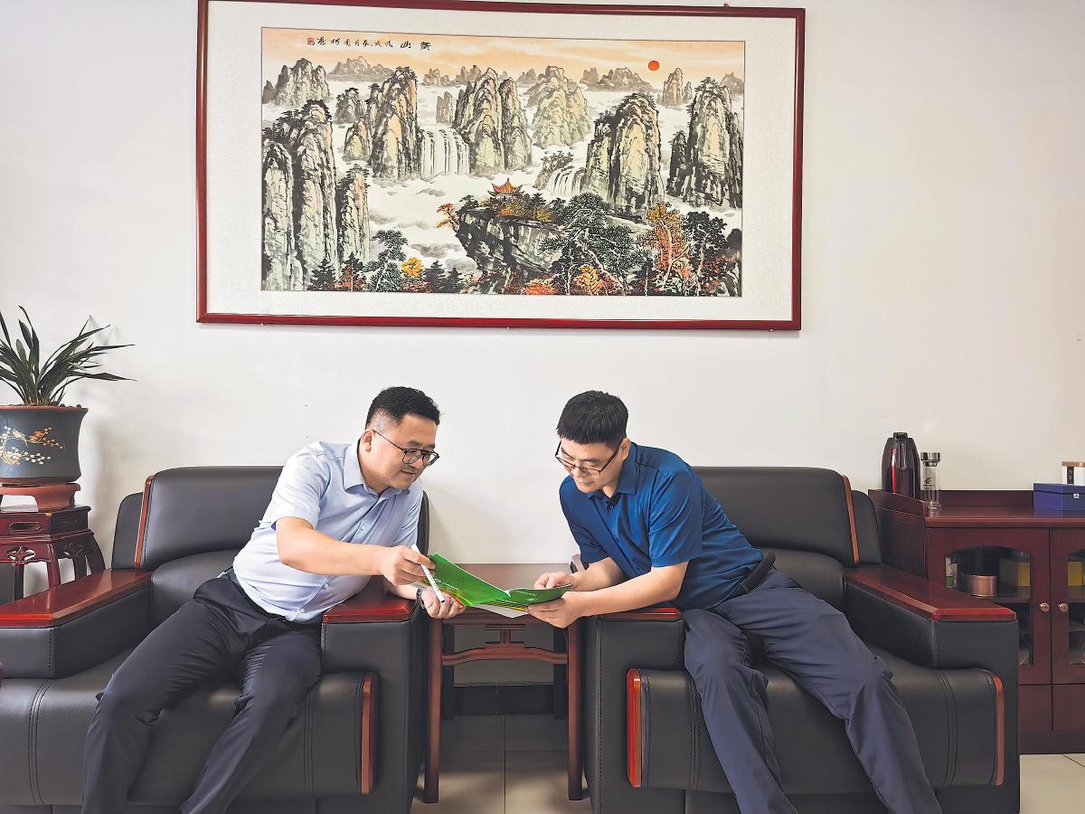 趙晨(左)走訪客戶,調研業(yè)務市場。