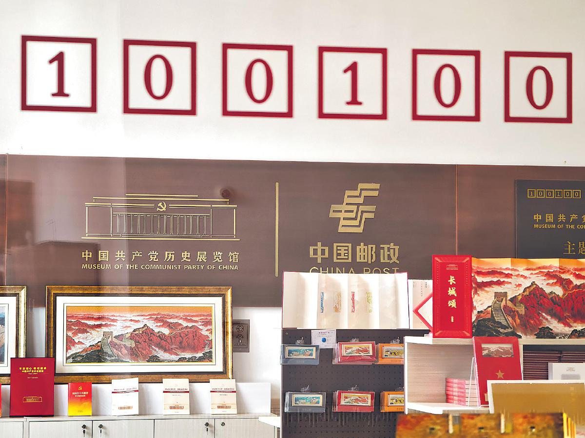 “您在前方看到的是中國共產黨歷史展覽館主題郵局,郵編是100100,象征著展覽館落成于中國共產黨成立100周年之際,激勵大家向著第二個百年奮斗目標勇往直前?!眮淼街袊伯a黨歷史展覽館,當跟隨一身紅衣的講解員經過展覽館三層北側的主題郵局時,總會聽到這段精彩的講解。