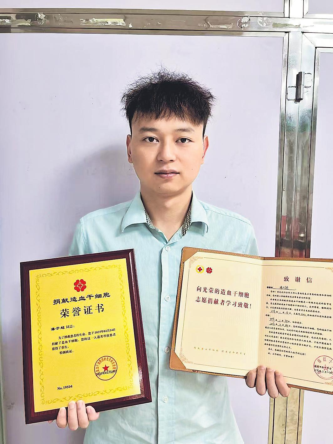 今年初,接到配型成功的電話后,想著能挽救一條生命,他內(nèi)心激動(dòng)不已,毫不猶豫地決定捐獻(xiàn)。潘子超說:“能成為別人絕境中的萬分之一匹配者,非常幸運(yùn)。”