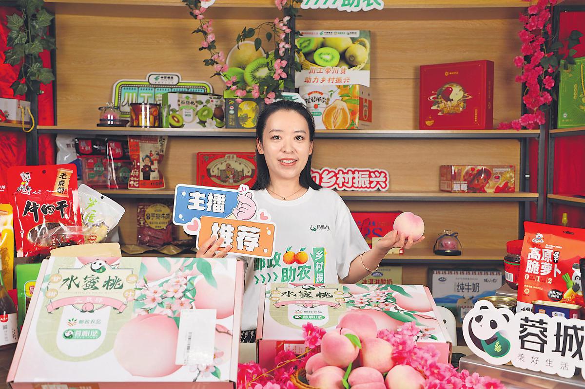 龍泉水蜜桃穩(wěn)居成都郵政夏日直播間的C位?! 觞S麗云 攝