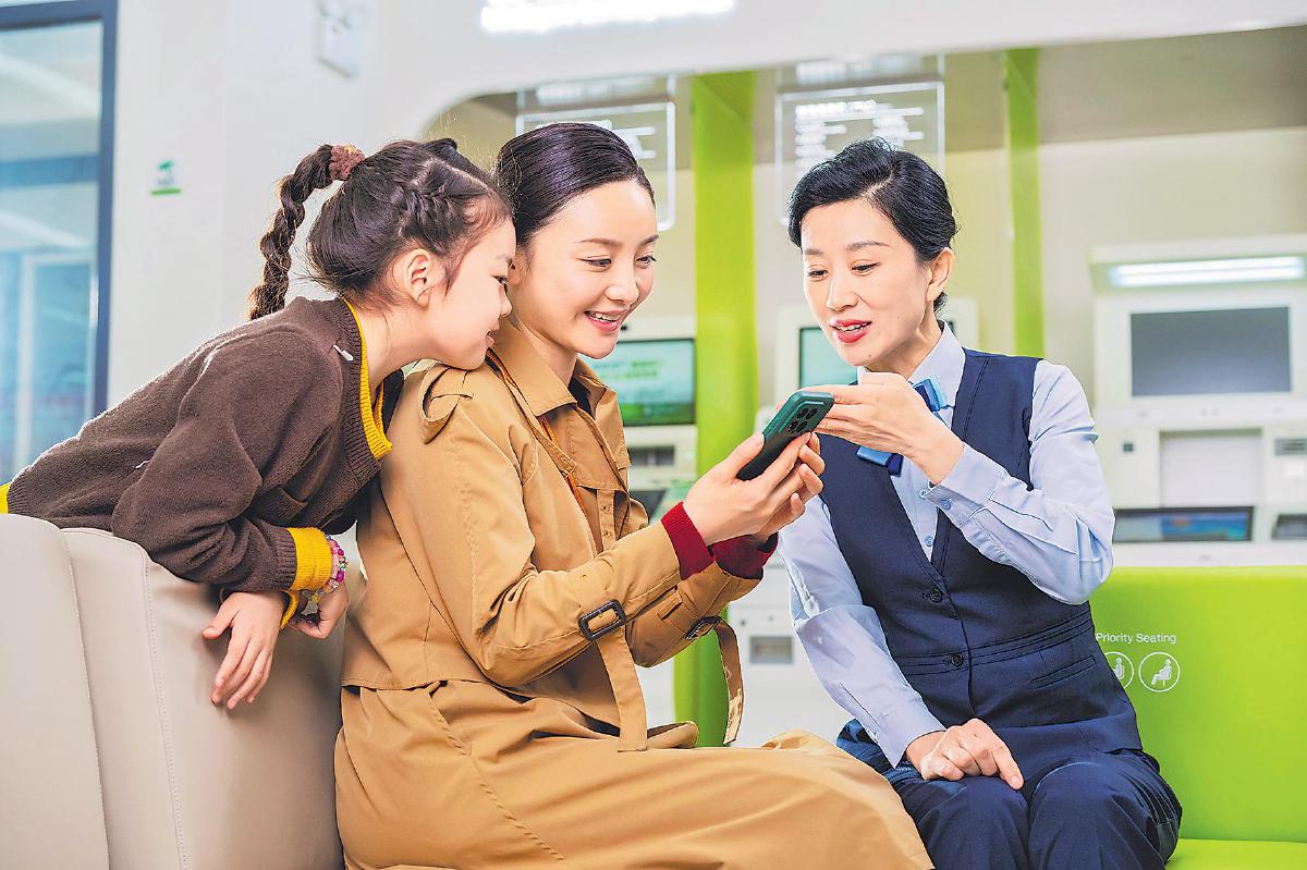 在郵儲(chǔ)銀行濟(jì)南市歷下支行,工作人員“一對(duì)一”為客戶介紹手機(jī)銀行新功能,助力客戶享受智能化服務(wù)。