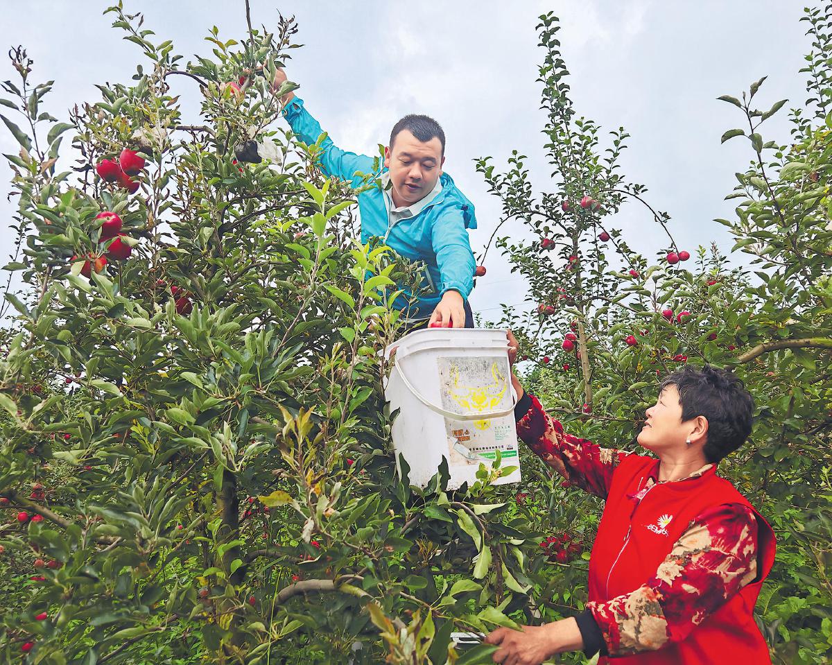 8月20日,云南省曲靖市馬龍區(qū)郵政分公司工作人員來到當?shù)毓麍@,和果農(nóng)一起采摘蘋果,為訂單發(fā)貨做準備。進入蘋果采摘季以來,馬龍郵政通過郵樂網(wǎng)直播帶貨、線下展銷等方式幫助果農(nóng)拓展銷路,日訂單峰值突破3000件。同時,郵政工作人員駐點合作果園,全程參與選果,還采用為寄遞蘋果量身定制的包裝材料,讓消費者品嘗到完好無損的鮮果。