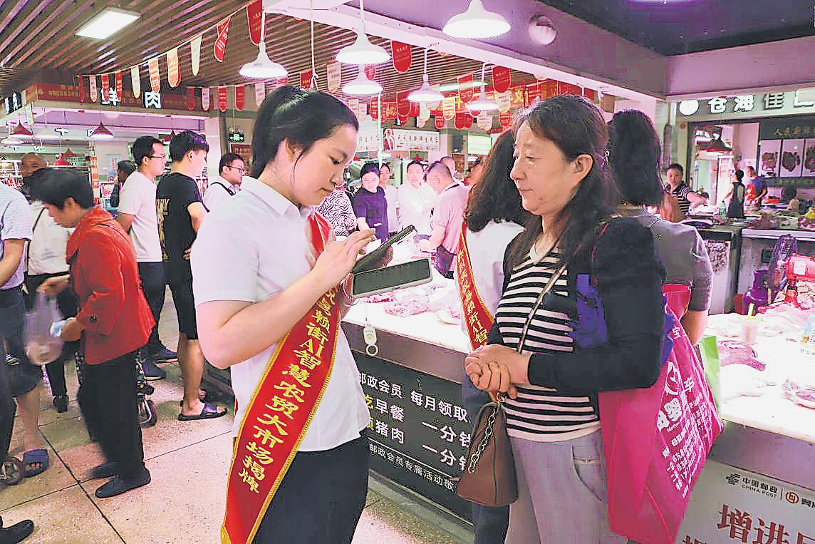 易賴街農(nóng)貿(mào)市場(chǎng)的蝶變,始于石鼓區(qū)分公司的精準(zhǔn)走訪。“我們通過對(duì)傳統(tǒng)農(nóng)貿(mào)市場(chǎng)的走訪發(fā)現(xiàn),這些傳統(tǒng)農(nóng)貿(mào)市場(chǎng)普遍存在溯源難、管理粗放等問題,于是,我們實(shí)行‘科技賦能+金融嵌入’雙輪驅(qū)動(dòng),出臺(tái)‘智慧市場(chǎng)+金融生態(tài)’的解決方案?!笔膮^(qū)分公司AI智慧菜市場(chǎng)項(xiàng)目成員肖陽說。項(xiàng)目啟動(dòng)初期,該分公司成立了專項(xiàng)工作小組,聯(lián)動(dòng)衡陽市分公司金融業(yè)務(wù)部、湘郵科技和服務(wù)商等組建攻堅(jiān)團(tuán)隊(duì),主動(dòng)對(duì)接衡陽市商務(wù)局、市場(chǎng)監(jiān)督管理局及市場(chǎng)運(yùn)營方,從食品安全溯源、經(jīng)營效率提升、消費(fèi)者權(quán)益保障三個(gè)維度制定方案,最終以郵政投入智慧系統(tǒng)與設(shè)備的方式,促成深度合作。在運(yùn)營服務(wù)中,衡陽市分公司運(yùn)用“數(shù)字網(wǎng)格靶向法”,以易賴街市場(chǎng)為中心劃定5公里服務(wù)圈,制定“每日兩次走訪、每日新增3戶商戶”的攻堅(jiān)計(jì)劃,將市場(chǎng)內(nèi)干貨、熟食、水產(chǎn)等8大品類商戶通過分戶管戶至專屬團(tuán)隊(duì),實(shí)行“誰開發(fā)誰維護(hù)”的臺(tái)賬式管理。同時(shí)推出“四季暖心計(jì)劃”,夏季為商戶送冰鎮(zhèn)涼茶、冬季送驅(qū)寒姜茶,全年提供零鈔兌換、資金結(jié)算咨詢等服務(wù),對(duì)高頻交易商戶開通“綠色通道”,15分鐘內(nèi)解決問題。