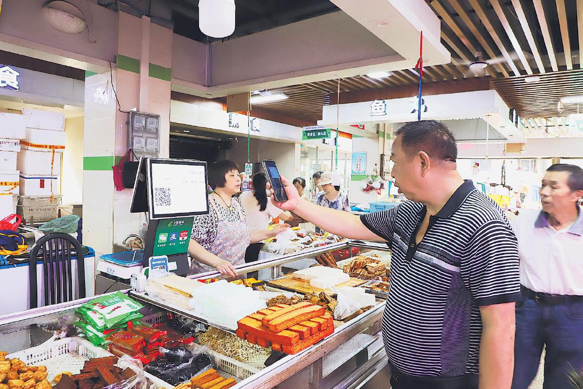 居民在易賴街AI智慧農(nóng)貿(mào)市場(chǎng)用手機(jī)支付?!趵顭o我 郭育琳 攝