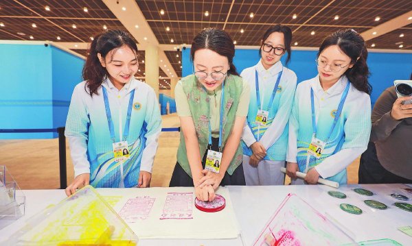 天津郵政充分發(fā)揮自身文化屬性,聚焦“傳統(tǒng)文化、大國外交、魅力天津”三大主題,結(jié)合天津城市特色,推出45款彰顯天津文化和郵政文化的郵品。同時,天津郵政設(shè)置郵品互動體驗區(qū),展出中國首套郵票——大龍郵票。媒體記者和工作人員在欣賞郵票珍品的同時,還能體驗大龍郵票拓印制作過程(見圖),更加深刻感受到中國郵政的歷史厚重感以及天津的文化底蘊(yùn)。