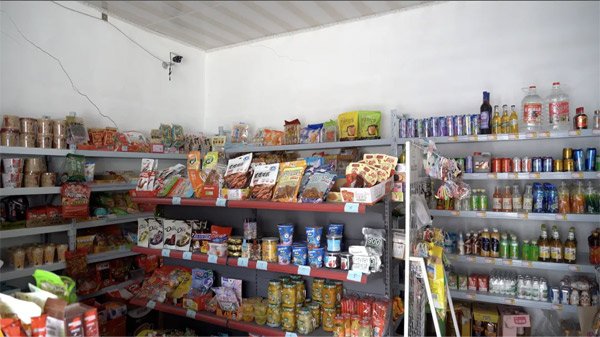 半個小時后,來到加查縣冷達鄉(xiāng)郵政所,抬眼望去,郵政所對面恰好有一家小超市,名為立偉便民超市,店內(nèi)洗衣液、洗潔精等日化品一應俱全,各種小零食、學習用品琳瑯滿目,把貨架堆得滿滿當當。