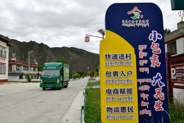 采訪組穿過村委會前的小廣場,走向設在村委會內(nèi)的寄遞物流綜合服務站,村民次仁頓珠正在這里忙著領取快遞?!拔仪皟商斐鋈辙r(nóng),不在家,就讓投遞員把東西放站點了,今天過來取件?!彼贿呍诤炇毡旧虾炞?,一邊笑著跟采訪組說道,“以前取快遞特別不方便,得到縣里去,要么就得托人捎帶,費時又費力。”