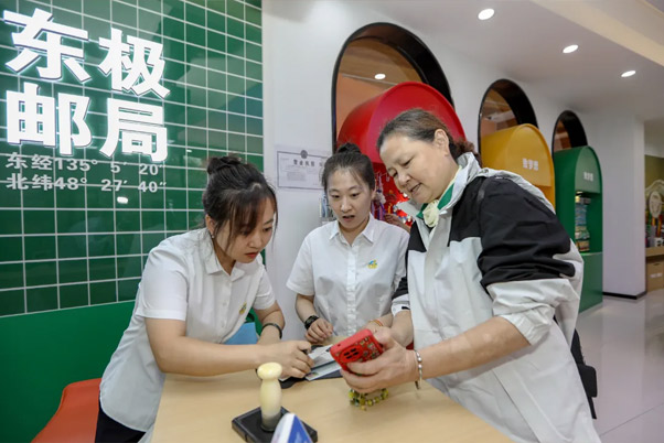 “經(jīng)常在短視頻中看到這家主題郵局。這里的產(chǎn)品很有紀(jì)念意義,讓我更加了解了撫遠(yuǎn)的深厚文化?!眮碜越K的游客張女士表示。
