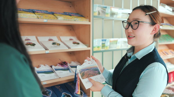 “馬上”郵局營業(yè)員彩紅說:“我手里的這款明信片是異形明信片,明信片上是伊犁風光,有天馬的元素,還有流蘇,很有設計感。我們還開發(fā)了以伊犁景點為主題的流沙冰箱貼,其中這款紫色的薰衣草冰箱貼是我們這里的爆款。”