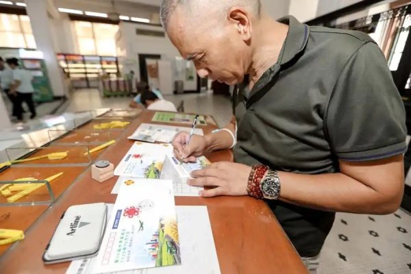 最受矚目的環(huán)節(jié),莫過(guò)于第56屆世界郵政日紀(jì)念封的首發(fā)。紀(jì)念封剛一亮相,便吸引了大批市民駐足圍觀,大家自覺(jué)排成整齊的隊(duì)伍,有序等待領(lǐng)取;拿到紀(jì)念封后,又紛紛走向紀(jì)念郵戳區(qū),小心翼翼地為封片蓋上專屬印記,每一個(gè)動(dòng)作都透著對(duì)集郵的珍視。