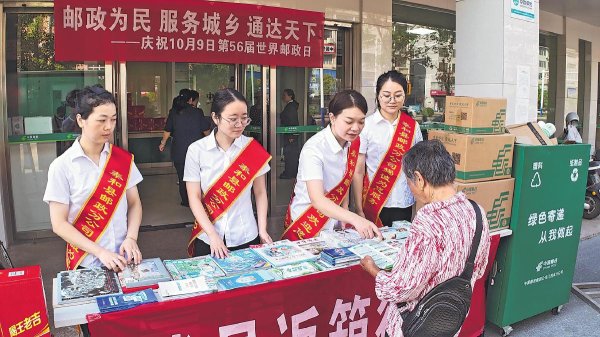 10月9日,江西省泰和縣郵政分公司舉辦世界郵政日主題宣傳活動?,F(xiàn)場通過業(yè)務(wù)咨詢與展示,向市民普及郵政在鄉(xiāng)村振興、普惠金融等領(lǐng)域的現(xiàn)代化服務(wù)。該活動同步發(fā)起“我是返箱行動π”綠色倡議,在全縣郵政網(wǎng)點(diǎn)與社區(qū)布設(shè)回收箱,推廣可循環(huán)使用的“環(huán)郵箱”,將服務(wù)宣傳與環(huán)保理念深度融合,展現(xiàn)了郵政服務(wù)民生、踐行綠色發(fā)展理念的新形象?! 醺呖品濉z影報道