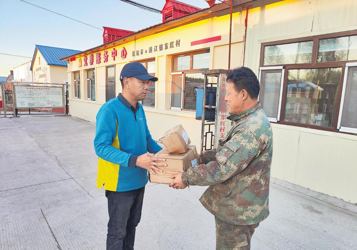 “開業(yè)時的床品、日常用的廚具,大多是網(wǎng)上買的,全靠彭師傅送上門?!币淮?,民宿經(jīng)營者王延杰收到39件包裹,大到家具配件,小到裝飾物件,全靠彭杰頂著夏日的悶熱,一件件從郵車上搬下來并送進門。彭杰的衣服被汗水打濕貼在背上,他卻笑著說“不麻煩”。赫哲新村黨支部書記李少東對彭杰的服務也非常認可:“郵政始終為我們村民提供優(yōu)質(zhì)的服務,得到村民的一致好評?!?/p>