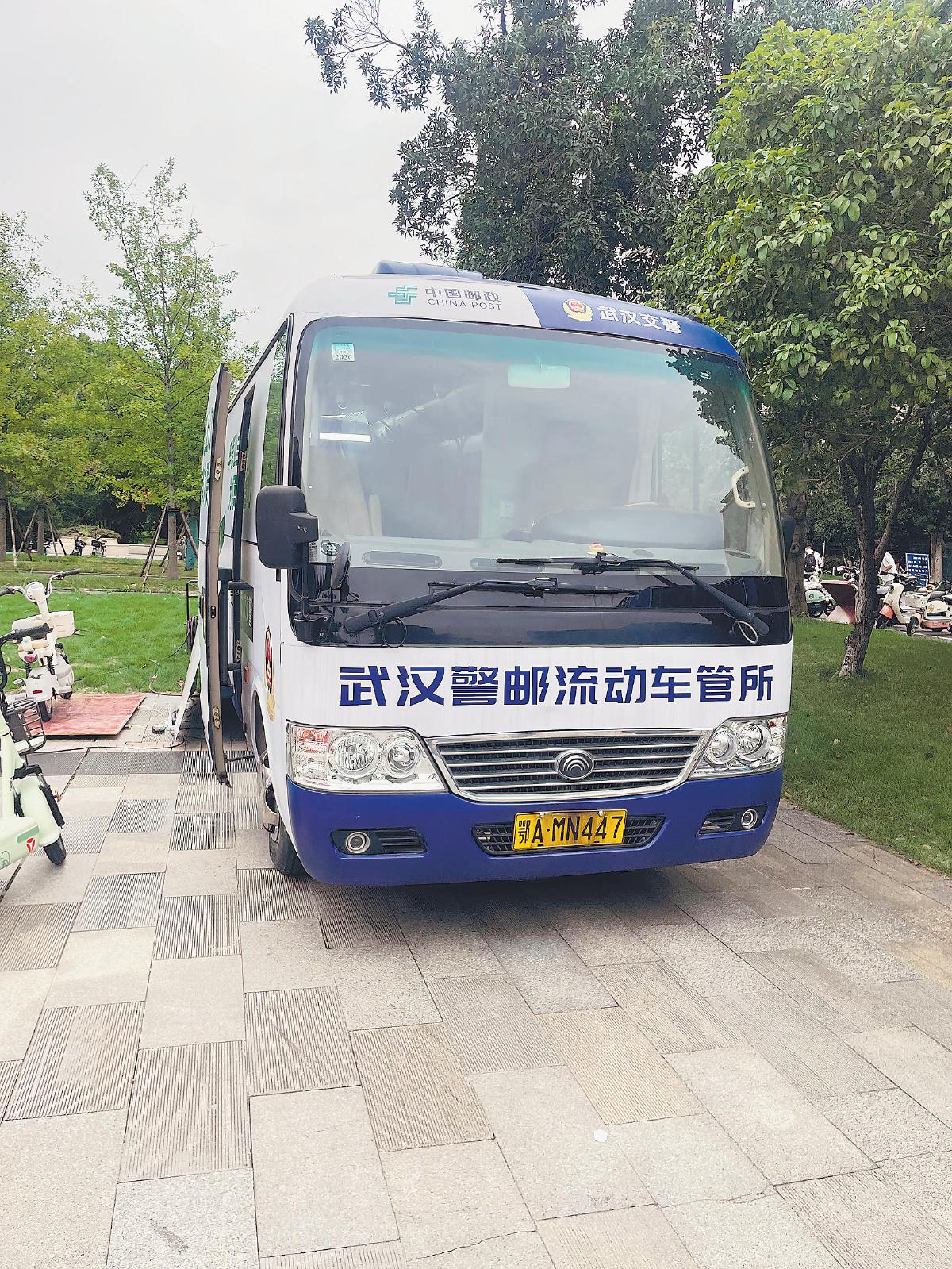 武漢郵政從車輛硬件配置到功能設(shè)計(jì),都圍繞“上門辦”精心定制,師生們在現(xiàn)場完成信息錄入、資料審核、號牌領(lǐng)取等環(huán)節(jié),最快僅用5分鐘。