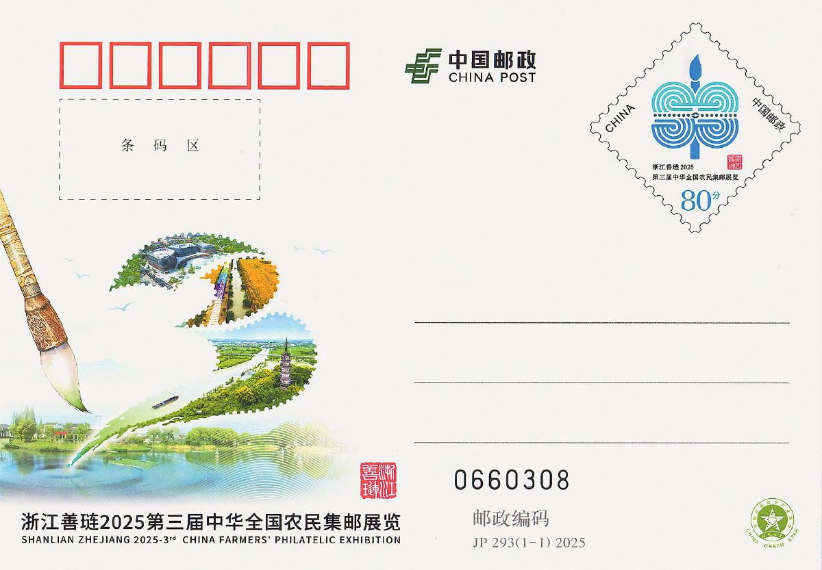 展覽集中展示全國28個(gè)省級(jí)郵協(xié)精選的146部、450框“三農(nóng)”題材郵集,涵蓋傳統(tǒng)、郵政歷史、專題等10個(gè)競(jìng)賽類別,特別增設(shè)19部、30框書信集郵非競(jìng)賽單元。中國郵政為本次郵展特別發(fā)行《浙江善璉2025第三屆中華全國農(nóng)民集郵展覽》紀(jì)念郵資明信片1枚。