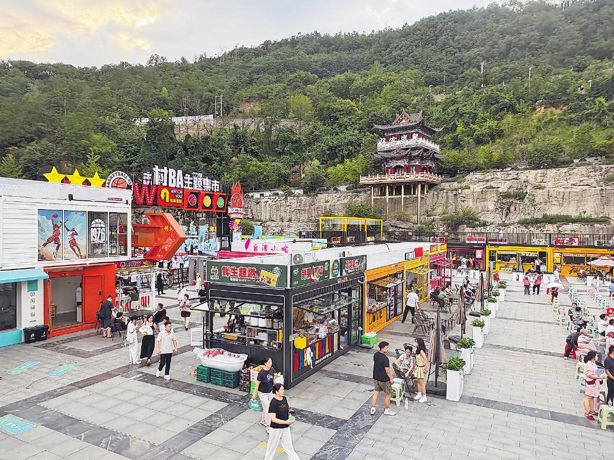賽場外的“村BA”主題集市熱鬧非凡。