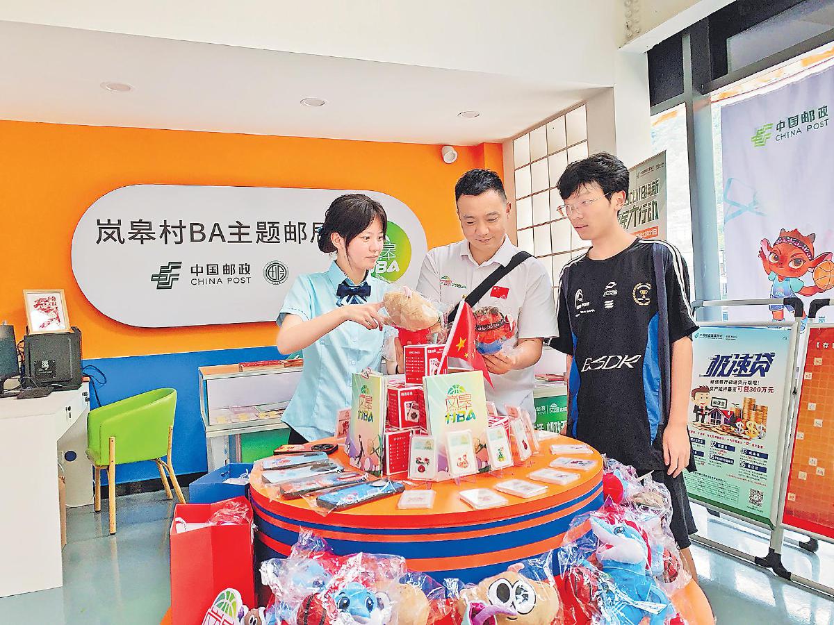 走進位于“嵐皋村BA”賽場一側的主題郵局,滿滿的“村BA”文化氣息撲面而來。這里精心陳列著專門為“村BA”賽事定制開發(fā)的明信片、首日封、個性化郵折等郵政特色產(chǎn)品,以及吉祥物毛絨玩具、冰箱貼、托特包等新潮的文創(chuàng)周邊。每一件商品都承載著“村BA”的精彩瞬間和鄉(xiāng)村體育的獨特魅力,成為傳播“村BA”文化的重要載體。