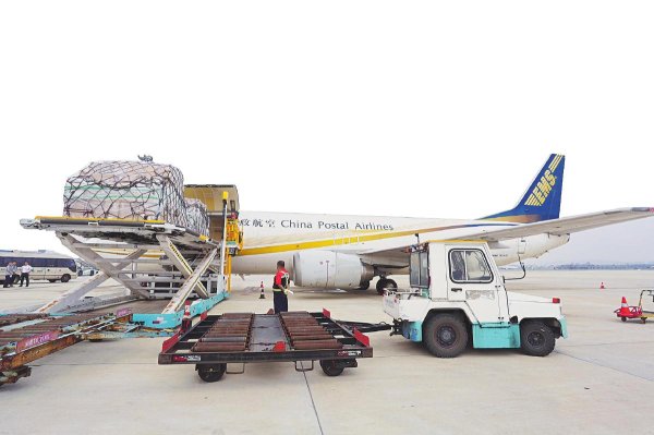 郵航飛機滿載中郵集運貨物駛向海外。