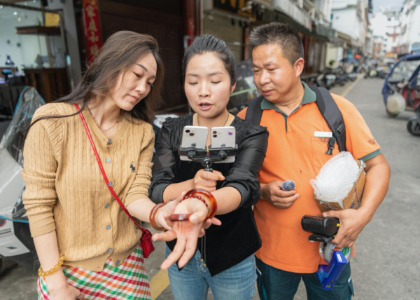 得益于“邊貿(mào)郵路”的廣度與活力,騰越商貿(mào)城翡翠市場商戶楊桂英的電商事業(yè)正以蓬勃的態(tài)勢,節(jié)節(jié)攀升。她說:“我們通過直播,把騰沖的血珀玉石賣到天南海北?!睉{借覆蓋全國的寄遞網(wǎng)絡(luò),“邊貿(mào)郵路”讓騰沖玉器從線下走向線上,從邊境直達(dá)千家萬戶,不斷煥發(fā)新的產(chǎn)業(yè)活力。