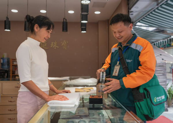 “小楊服務(wù)態(tài)度好,一打電話馬上上門,包裝產(chǎn)品比我們自己還要仔細(xì)。”商戶潘正麗一邊將客戶精心挑選的翡翠手鐲交給楊世謙,一邊由衷稱贊。對她這樣的商戶而言,郵政提供的不僅是寄遞服務(wù),更是一份沉甸甸的信任保障。楊世謙的腳步,不僅串起了商戶與千里之外的市場,也讓郵政的“靠譜”形象,成為這條財富之路上最令人安心的一抹綠色。