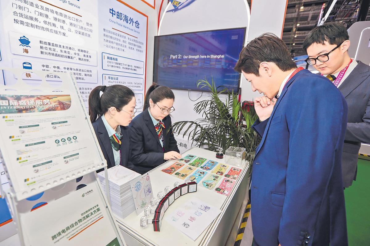 11月5日—10日,第八屆中國國際進口博覽會(以下簡稱“進博會”)在上海舉行。本屆進博會有155個國家、地區(qū)和國際組織參與,4108家境外企業(yè)參展,規(guī)模再創(chuàng)新高。上海市郵政分公司特為本屆進博會啟用并發(fā)行了《第八屆中國國際進口博覽會》YFM118E型郵資機戳和紀(jì)念封各1枚,受到廣大集郵愛好者和參展觀眾的歡迎。同時,中國郵政EMS連續(xù)第八年受邀參展,展示了其全球寄遞網(wǎng)絡(luò)、境外倉配矩陣等六大板塊成果,呈現(xiàn)郵政從“郵商并舉”向“郵商貨倉并進”的轉(zhuǎn)型路徑,為跨境貿(mào)易提供全鏈條解決方案。圖為觀眾被EMS展位上的特色明信片所吸引。