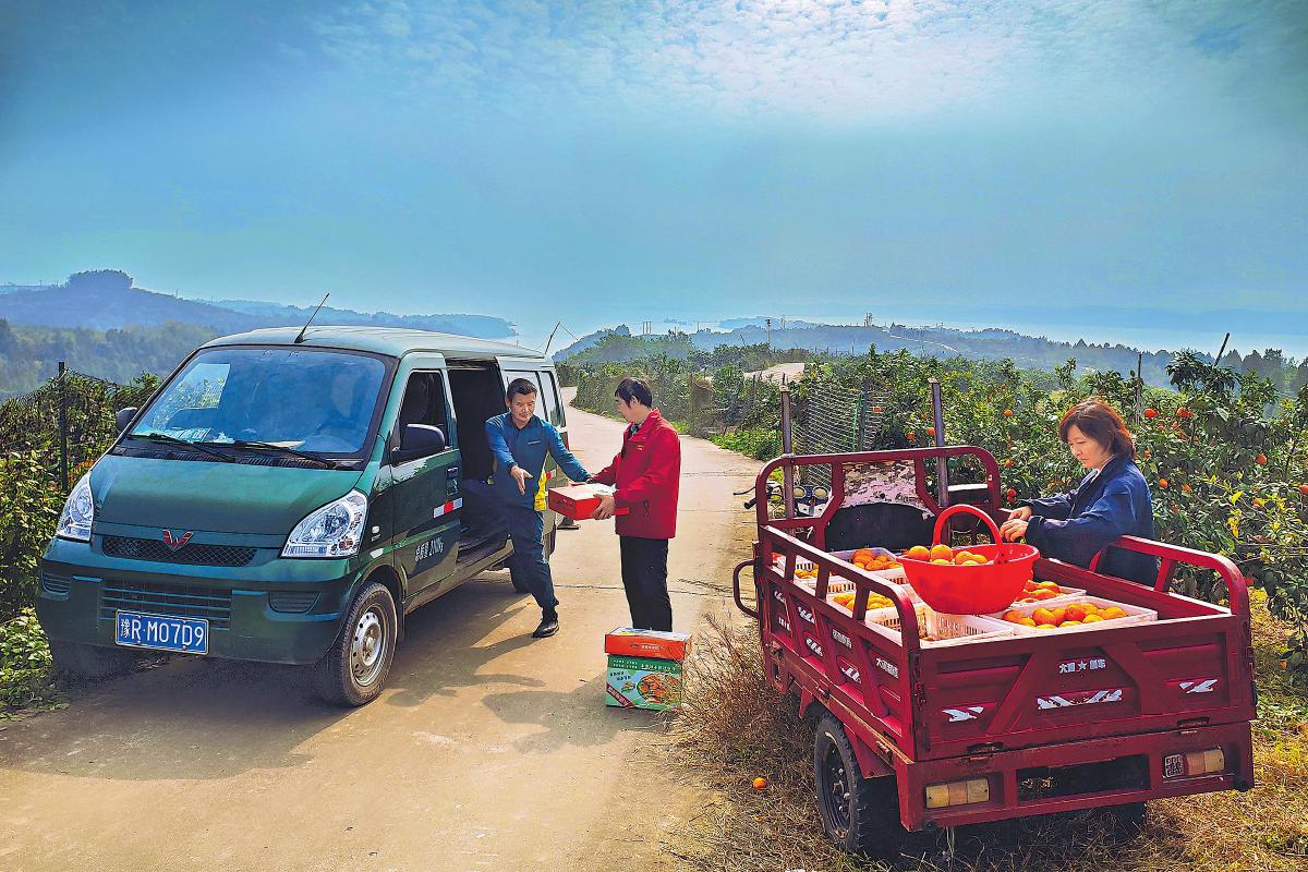 初冬時(shí)節(jié),河南省南陽(yáng)市淅川縣倉(cāng)房鎮(zhèn)柑橘基地內(nèi),金黃的果實(shí)掛滿枝頭。南陽(yáng)市郵政分公司的員工與果農(nóng)忙碌著采摘、封裝,一輛輛綠色郵車(chē)整裝待發(fā),將新鮮的“渠首甜”送往全國(guó)各地。