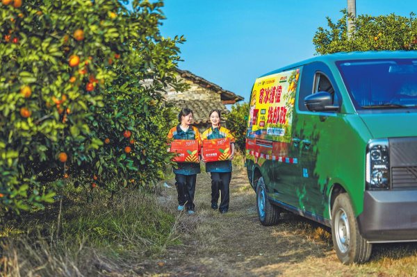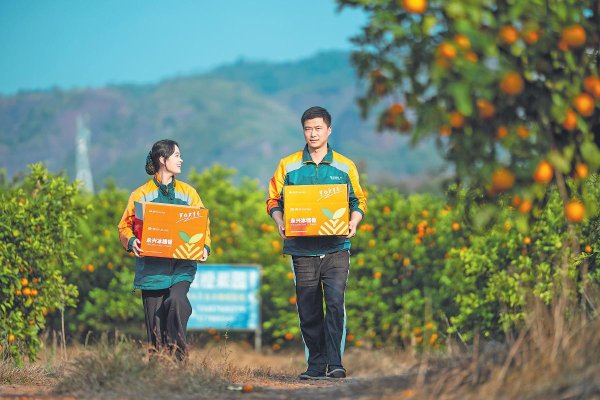 郵政員工把“最后一百米”縮短到零——走進果農(nóng)院落,將剛離枝頭的冰糖橙直接裝車,家門口即刻變“始發(fā)站”。